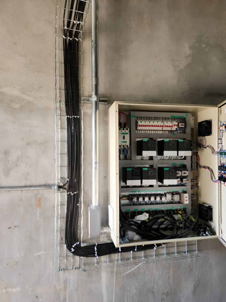 Instalacion electrica en todo el matadero, incluyendo, paneles electricos, lamparas y mas accesorios electricos.